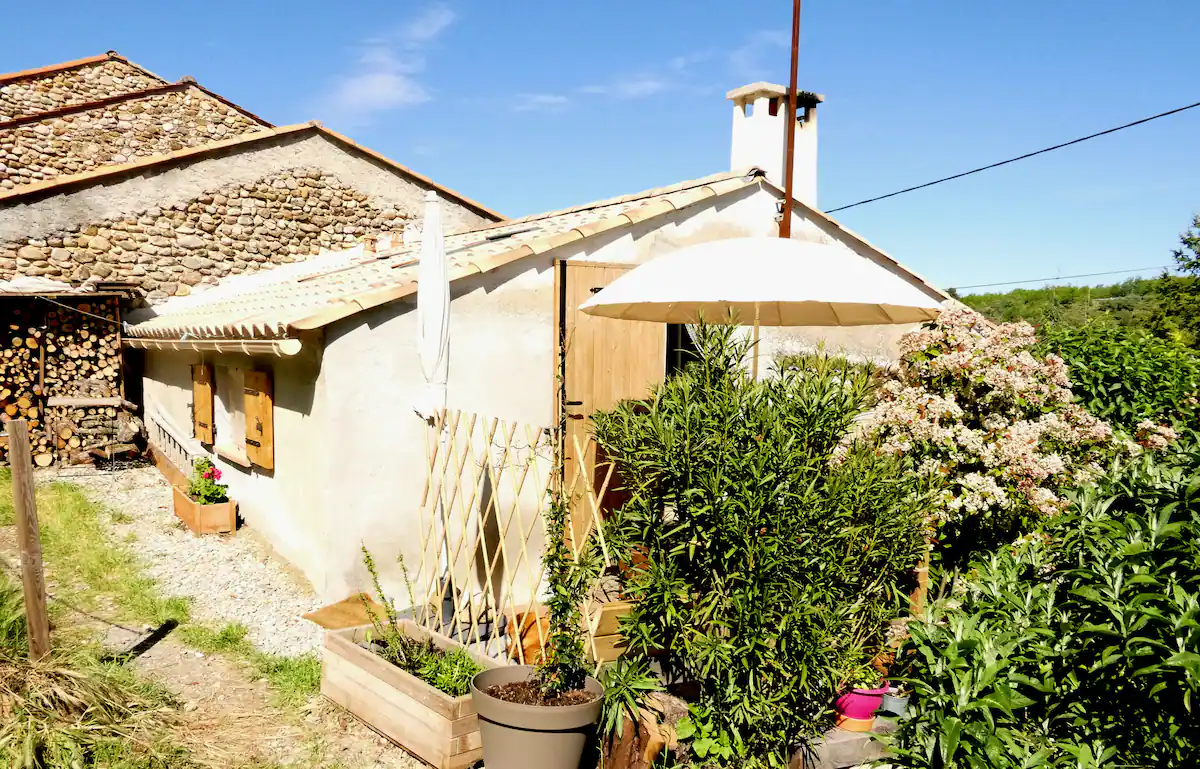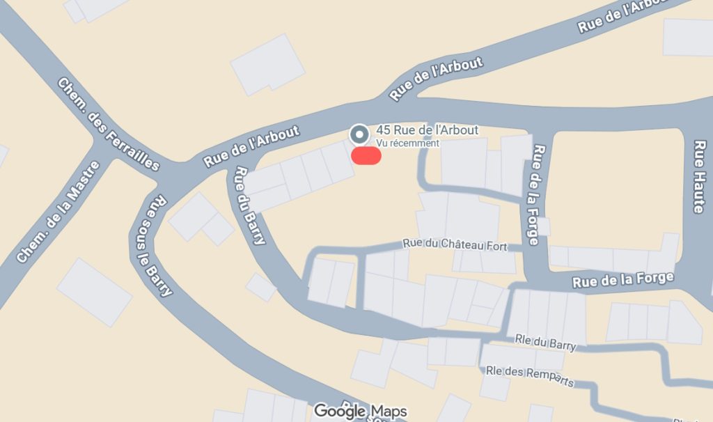 L’adresse finale est : 45 rue de l’Arbout, 04500 Montagnac Montpezat. On rentre par le haut (prenez le petit escalier ou le chemin qui contourne).